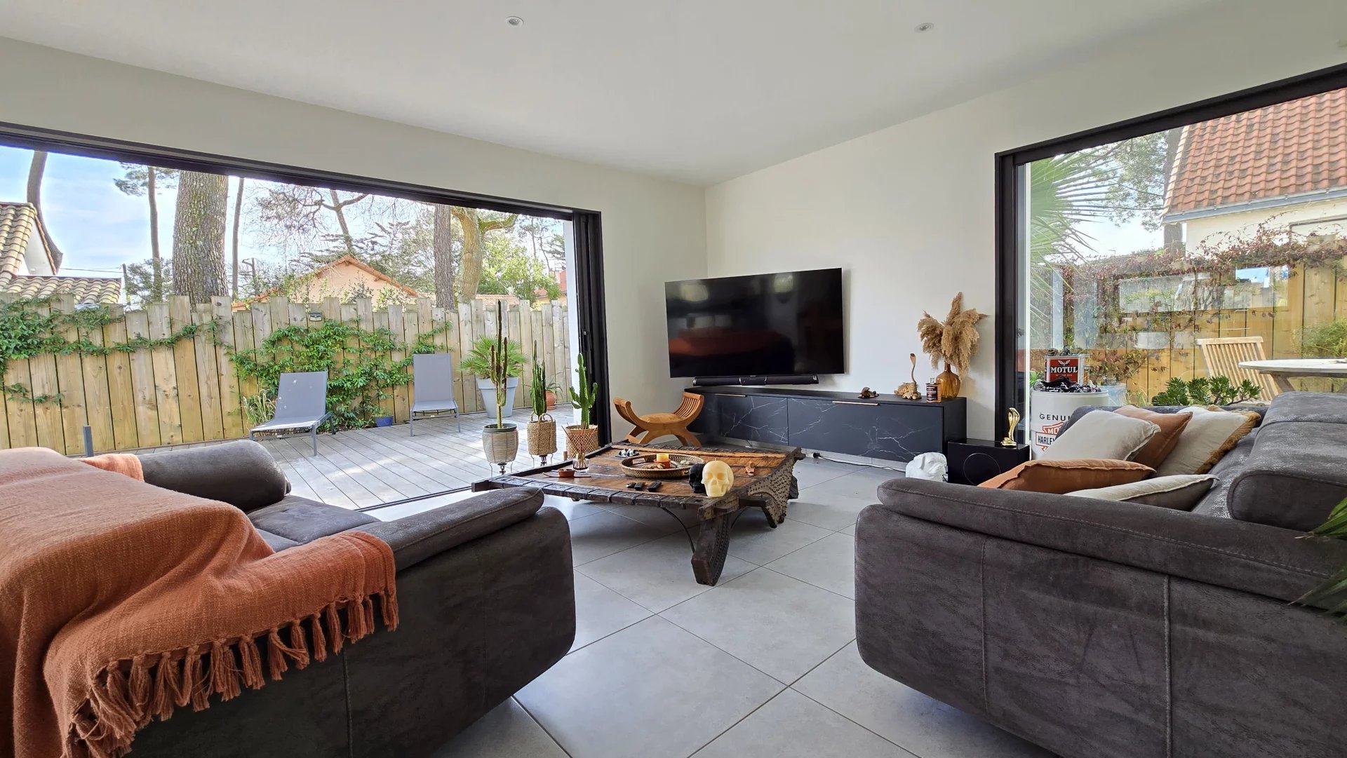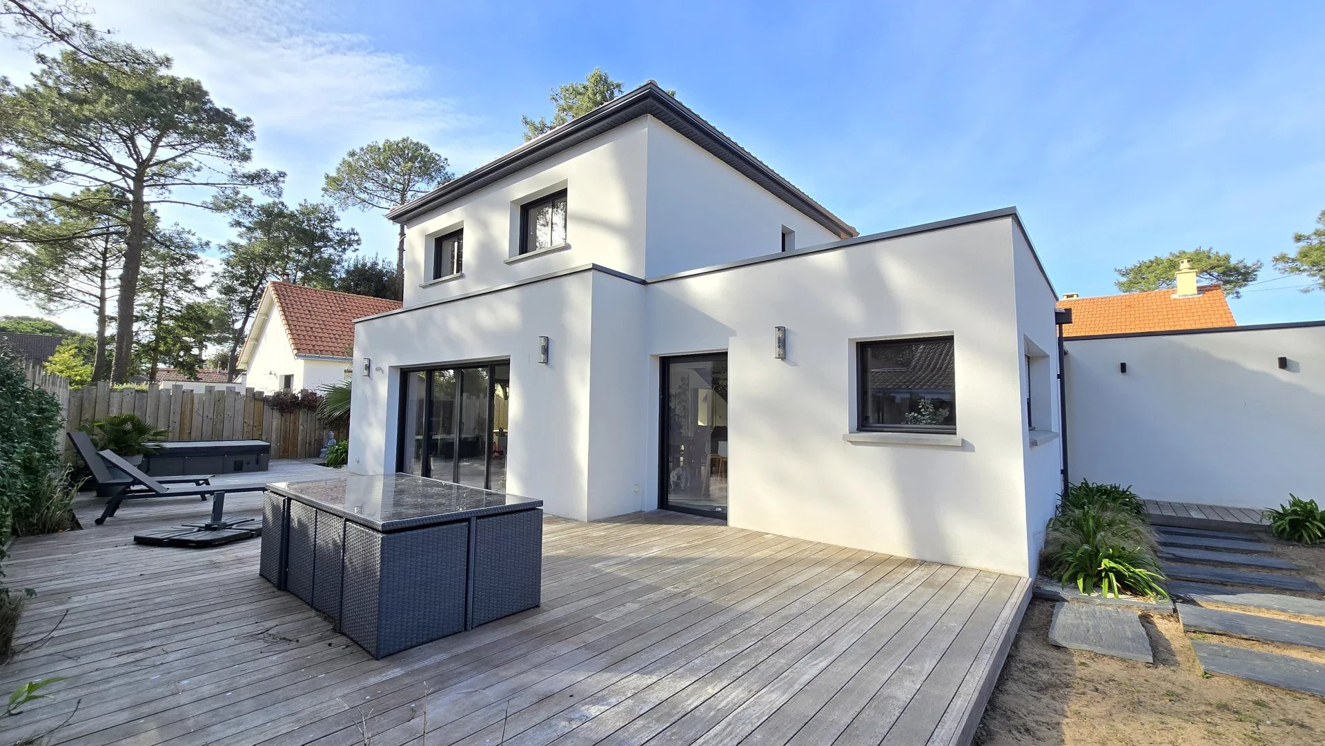 Idéalement située dans un environnement calme à seulement 700m des plages, venez découvrir cette belle maison contemporaine construite en 2021 avec vie de plain-pied d'une superficie d'environ 142m2.